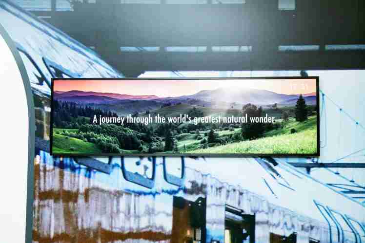 德铁导入达擎 TARTAN 28.6寸面板,,着眼 TARTAN 与众不同的尺寸比例,,,能为车厢带来更大的使用效益、、、更出色的观赏体验与更多的设计弹性。。(图片来源:德国铁路公司)