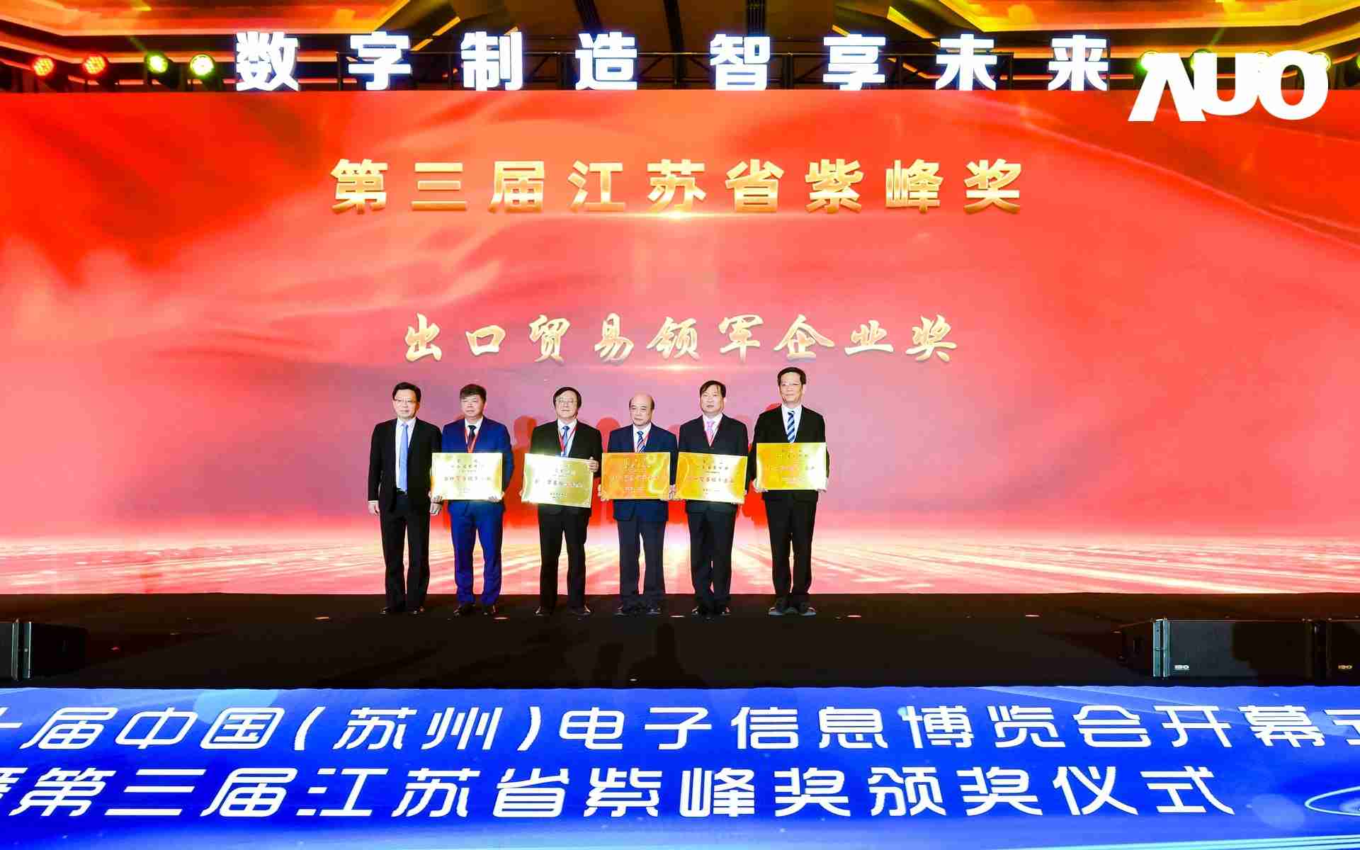 电博会开幕式当天也是第三届江苏省紫峰奖颁奖仪式,,,省台办、、、工信厅、、、商务厅、、、、苏州市相关领导均出席并颁奖。。。该奖项为表彰对江苏高质量发展做出积极贡献的在苏企业,,,由江苏省政府专门设立。。。z6mg·人生就是博光电 (苏州) 总经理郭振明代表上台领奖,,这也是z6mg·人生就是博苏州连续三次蝉联紫峰奖 出口贸易领军企业奖。。。z6mg·人生就是博数位总经理赵丽娜女士,,也参与本次开幕式,,,,上台为本地化赋能签署战略合作协议,,将优质服务资源集合、、、下沉到更多细分行业,,,为更多地区的制造企业提供数字化转型服务。。